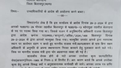 बिलासपुर, 05 मार्च 2024 महतारी वंदन योजना के तहत राज्य शासन द्वारा महिलाओं को एक हजार रूपए की सहायता राशि…