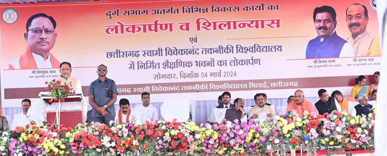 मुख्यमंत्री श्री विष्णुदेव साय ने समारोह को सम्बोधित करते हुए कहा कि आज एक साथ ढ़ाई सौ करोड़ रूपए से अधिक लागत के विकास कार्याें का लोकार्पण व भूमिपूजन हुआ है। जिसका लाभ संभाग के सभी जिलेवासियों को मिलेगा। मुख्यमंत्री श्री साय ने कहा कि पहली कैबिनेट में ही प्रदेश के गरीबों को प्रधानमंत्री आवास योजना अंतर्गत 18 लाख आवास स्वीकृत करने का निर्णय किया गया है। किसानों को धान के दो वर्षाें के बोनस की बकाया राशि 3716 करोड़ रूपए किसानों के खाते में अंतरण किया गया है। वन क्षेत्रों में रहने वाले तेंदूपत्ता संग्राहकों को प्रति मानक बोरा 5 हजार 500 रूपए पारिश्रमिक दिया जाएगा। श्री साय ने कहा कि मोदी जी की गांरटी के मुताबिक सरकार महतारी वंदन योजना के पात्र हितग्राही महिलाओं को प्रतिमाह एक हजार रूपए शीघ्र देने जा रही है। योजना अंतर्गत प्रदेश में 70 लाख 74 हजार आवेदन प्राप्त हुए है। सरकार सभी पात्र हितग्राहियों को लाभान्वित करेगी। उन्होंने कहा कि इस वर्ष प्रदेश में किसानों से रिकार्ड 145 लाख मीट्रिक टन धान की खरीदी 3100 रूपये प्रति क्विंटल के मान से खरीदी हुई है। किसानों को समर्थन मूल्य के भुगतान पश्चात अंतर की राशि भी किसानों के खातों में शीघ्र अंतरित की जाएगी। मुख्यमंत्री श्री साय ने प्रतियोगी परीक्षाओं के प्रतिभागियों को सरकार की गारंटी से अवगत कराते हुए कहा कि राज्य प्रशासनिक सेवा परीक्षा में हुई गड़बड़ियों की जांच सीबीआई को सौंपी गई है।