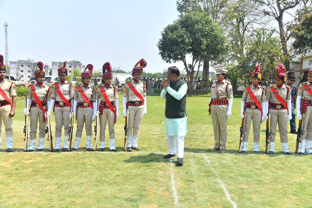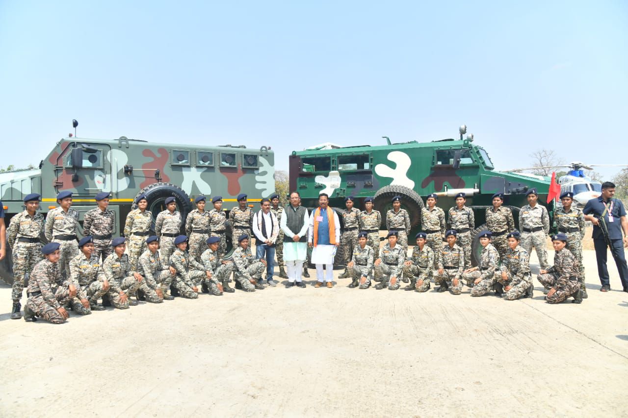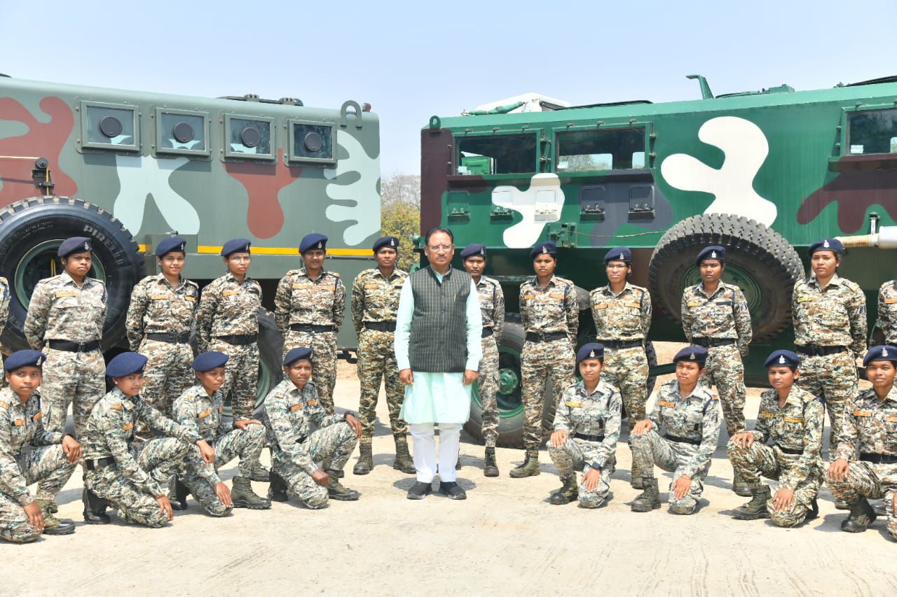मुख्यमंत्री श्री साय ने इस दौरान एंटी लैंड माईन व्हीकल का अवलोकन किया,साथ ही दन्तेश्वरी फाईटर्स के महिला जवानों के साथ फोटो खिंचवाई।