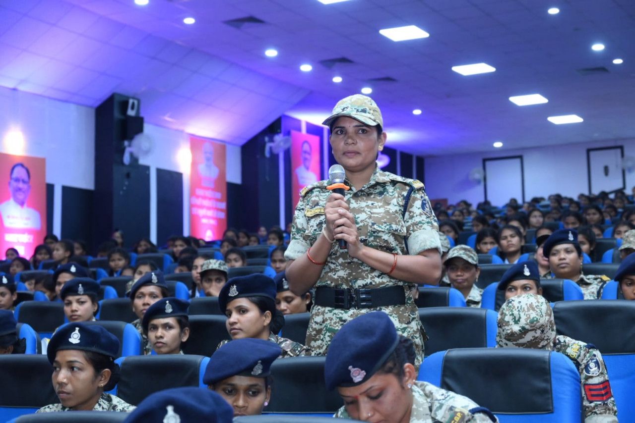 अंतर्राष्ट्रीय महिला दिवस के अवसर पर मुख्यमंत्री श्री विष्णु देव साय दंतेवाड़ा जिले के जावंगा पहुंचे। यहां उन्होंने डीआरजी, सीआरपीएफ और नारायणपुर के बस्तर फाईटर्स की सैनिक महिलाओं से संवाद किया। संवाद के दौरान मुख्यमंत्री से बस्तर फाइटर्स की दल कमान्डर सुनैना पटेल ने अपना अनुभव साझा करते हुए बताया कि उन्हांेने होम गार्ड के रूप में अपने कैरियर की शुरुआत की थी। वहां से लेकर अब तक उन्हें लगातार प्रशंसा और प्रोत्साहन मिला। एक कमांडों के रूप में उन्होंने अपनी गर्भावस्था के 7वें महीने तक जंगल गश्त की। उन्हें इसकी प्रशंसा केन्द्रीय मंत्री श्रीमती स्मृति इरानी से भी मिली। नक्सली मुठभेड़ में उनकी भूमिका के परिणाम स्वरूप उन्हें आउट ऑफ टर्न पदोन्नति भी मिली है।