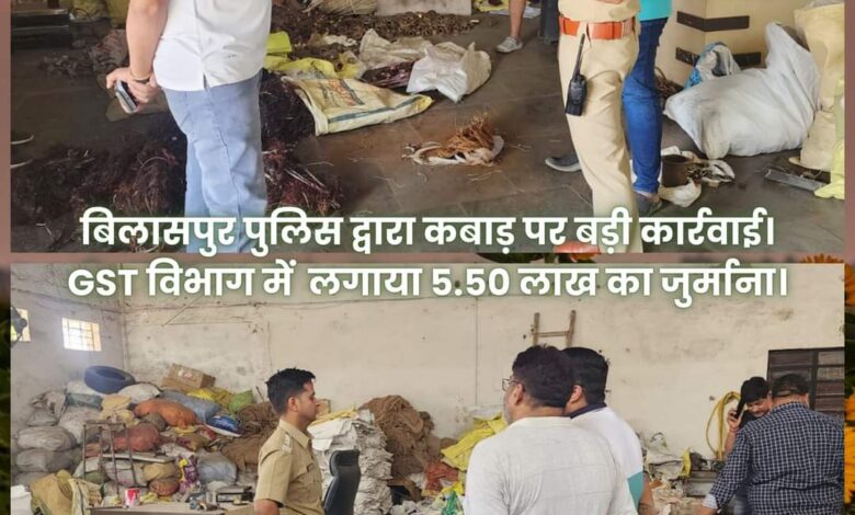 बिलासपुर पुलिस द्वारा कबाड़ पर बड़ी कार्यवाही, जीएसटी विभाग में लगाया 5.50 लाख जुर्माना।