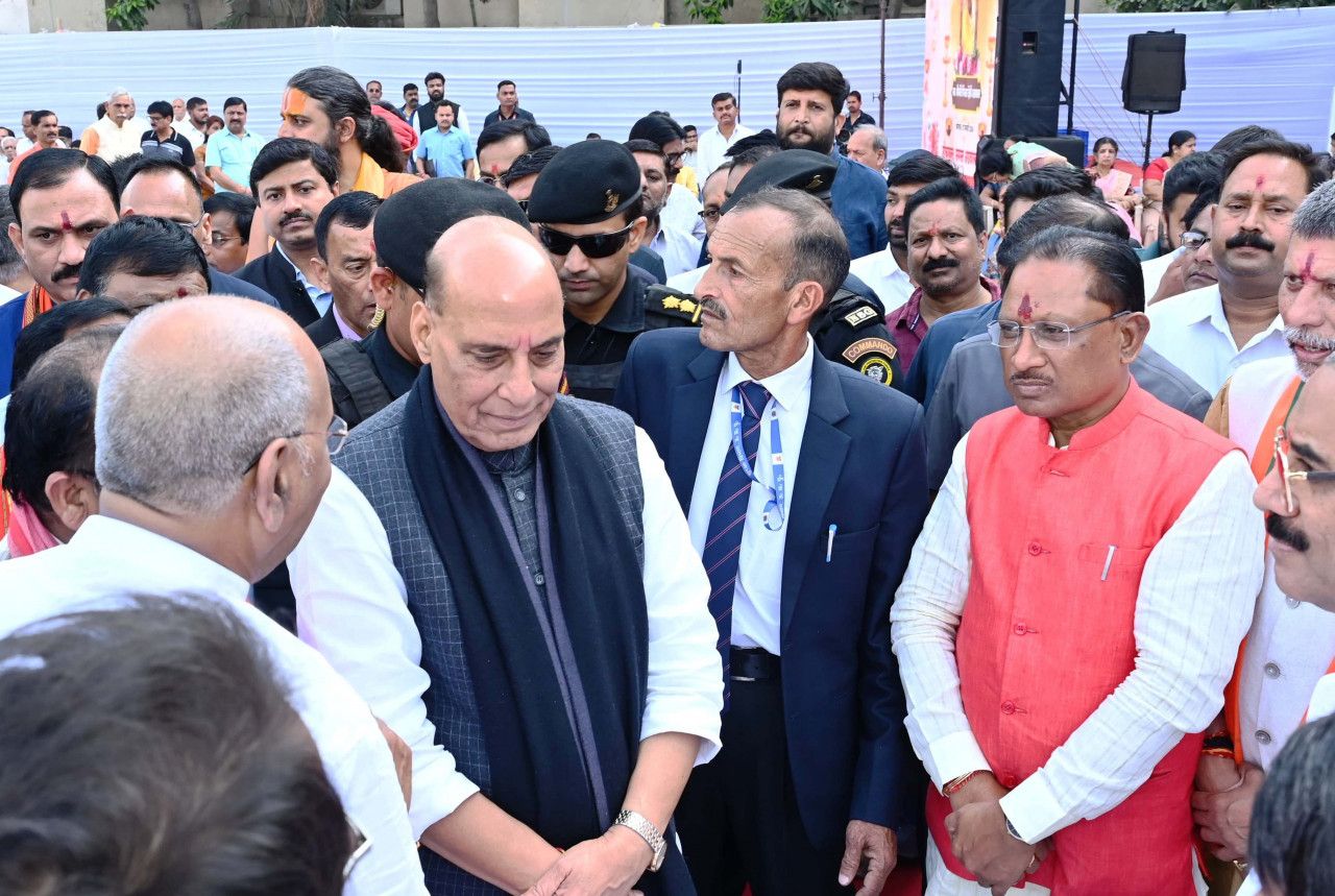 केन्द्रीय रक्षा मंत्री श्री राजनाथ सिंह और मुख्यमंत्री श्री विष्णु देव साय आज रायपुर के अग्रसेन धाम पहुंचकर स्कूल शिक्षा मंत्री श्री बृजमोहन अग्रवाल की माता के शांति मिलन कार्यक्रम में शामिल हुए। उन्होंने श्री अग्रवाल की माता श्रीमती पिस्ता देवी अग्रवाल की तस्वीर पर पुष्पांजलि अर्पित कर श्रद्धांजलि दी और दिवगंत आत्मा की शांति के लिए प्रार्थना की। केन्द्रीय रक्षा मंत्री श्री राजनाथ सिंह और मुख्यमंत्री श्री विष्णु देव साय ने श्री अग्रवाल के परिजनों से मिलकर उन्हें सांत्वना दीं।