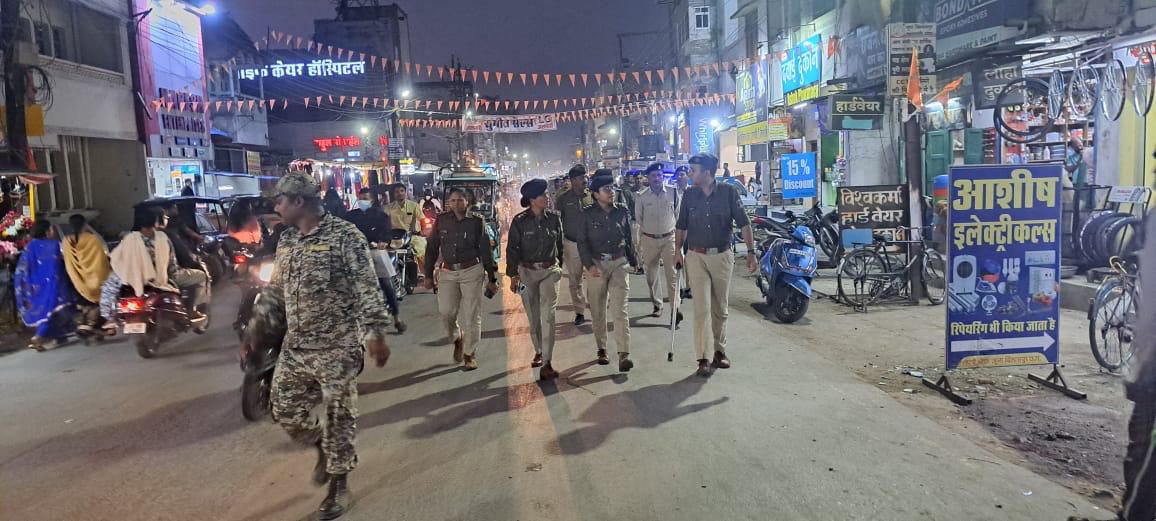 आज दिनॉक 07.02.2024 को श्रीमान अतिरिक्त पुलिस अधीक्षक महोदय शहर श्री राजेन्द्र जायसवाल द्वारा संयुक्त रूप से पैदल पेट्रोलिंग करने निर्देशत करने पर श्रीमान नगर पुलिस अधीक्षक कोतवाली श्रीमती पूजा कुमार के नेतृत्व में प्रशिक्षु आई.पी.एस. अजय कुमार, प्रशिक्षु डी.एस.पी. रोशन आहुजा, थाना प्रभारी कोतवाली निरीक्षक कमला पुसाम ठाकुर, थाना प्रभारी तोरवा निरीक्षक अंजना केरकेट्टा, के साथ थाना सिटी कोतवाली पुलिस, थाना तोरवा पुलिस स्टाफ एवं रक्षित केन्द्र से प्राप्त पुलिस बल के साथ ंकोतवाली चौक से मधुबन रोड जगमल चौक तक पैदल पेट्रोलिंग की गई। पैदल पेट्रोलिंग के दौरान दुकानो के बाहर रखे सामानो को दुकान के अंदर रखने हिदायत दी गई तथा बेतरतीब वाहनो के विरूद्ध चालानी कार्यवाही की गई। उक्त पैदल पेट्रोलिंग लगातार जारी रहेगा।