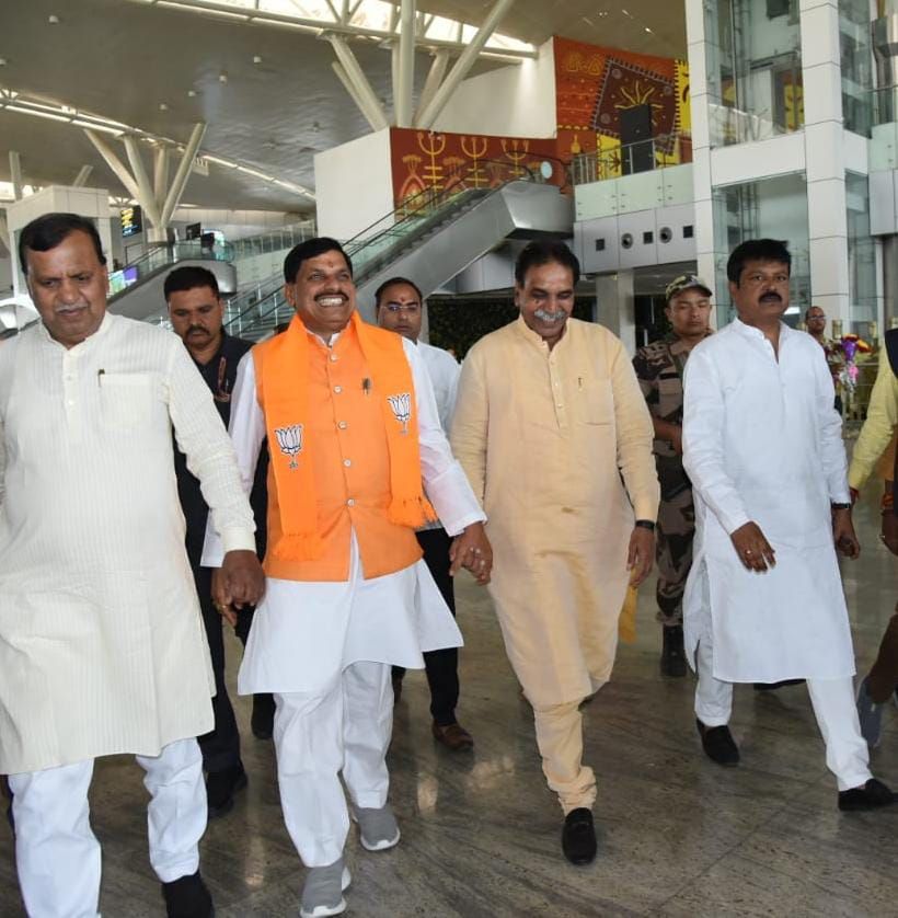 मध्यप्रदेश के मुख्यमंत्री डॉ. मोहन यादव के आज राजधानी रायपुर के स्वामी विवेकानंद एयरपोर्ट पहुंचने पर वित्तमंत्री श्री ओ.पी.चौधरी ने किया आत्मीय स्वागत