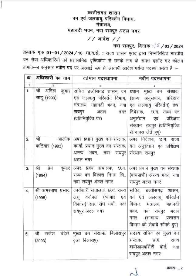 रायपुर बड़ी संख्या में भारतीय वन सेवा अधिकारियों का तबादला ‘देखें सूची’ LIVE EXPRESS CHHATTISGARHMarch 15, 20240 323 रायपुर, 15 मार्च 2024 LIVE EXPRESS CHHATTISGARHMarch 15, 20240 323 Facebook X LinkedIn WhatsApp Telegram Share via Email