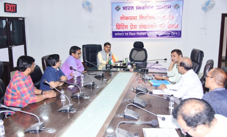 कलेक्टर एवं जिला निर्वाचन अधिकारी श्री अवनीश शरण के निर्देश पर जिला पंचायत सीईओ श्री रामप्रसाद चौहान ने आज जिला कार्यालय के सभाकक्ष में मुद्रकों एवं प्रिंटिंग प्रेस संचालकों की बैठक ली। उन्होंने चुनाव प्रचार के दौरान प्रकाशित प्रचार सामग्री के संबंध में निर्वाचन आयोग के दिशा निर्देशों की जानकारी देते हुए इनका हरहाल में पालन करने के निर्देश दिए। उन्होंने कहा कि प्रकाशित सामग्री में प्रकाशक एवं मुद्रक का नाम एवं पता हरहाल में प्रदर्शित किया जाना चाहिए। प्रकाशन उपरांत मुद्रक अथवा प्रेस संचालक को घोषण पत्र एवं प्रकाशित सामग्री प्रकाशन के तीन दिनों के भीतर 04 प्रतियों में स्थानीय जिला निर्वाचन कार्यालय में जमा करना होगा। सीईओ ने यह भी बताया कि ऐसी सामग्री के मुद्रण से स्पष्ट मना कर दें जो लोगों के बीच भेदभाव एवं अलगाव को बढ़ावा दे। मुद्रित सामग्री तथा घोषण के साथ प्रिन्ट कागजातों की प्रतियों की संख्या तथा मुद्रण के लिए वसूल की गई कीमत का ब्यौरा मुद्रक को जिला निर्वाचन कार्यालय को प्रस्तुत करना होगा। नियमों का उल्लंघन किए जाने पर अधिकतम 06 माह का कारावास एवं 2 हजार रूपये का जुर्माना दण्ड स्वरूप भुगतना पड़ेगा। बैठक में बड़ी संख्या में प्रिंटर्स एवं प्रेस संचालक मौजूद थे।