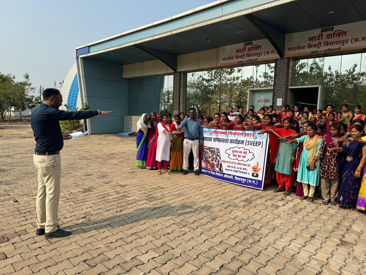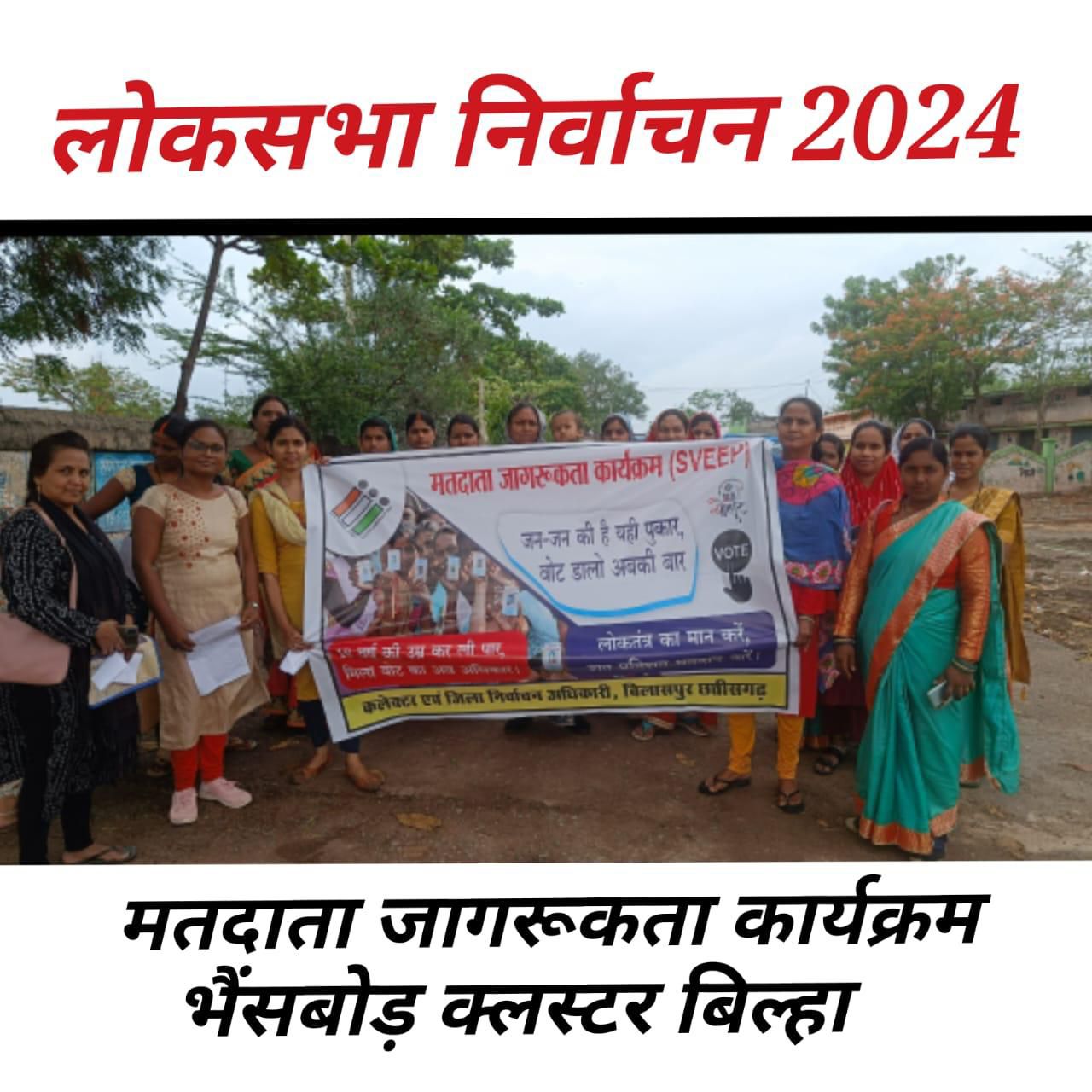 इसी क्रम में बिल्हा विकासखण्ड के ग्राम भैंसबोड़ की प्रेरणादायिनी संकुल संगठन एवं गारमेन्ट फैक्ट्री की दीदियां भी स्वीप कार्यक्रम में शामिल हुई। उन्होंने मतदाता शपथ लेकर अपने क्षेत्रवासियों को इस हेतु प्रेरित किया। दीदियों के द्वारा बड़ी संख्या में ग्रामीणों को जागरूक किया जा रहा है, ताकि वे अपने मताधिकार का सही प्रयोग करें। स्वीप मतदाता शिक्षा, मतदाता जागरूकता बढ़ाने और मतदाता साक्षरता का समर्थन करने के लिए भारत के निर्वाचन आयोग का प्रमुख कार्यक्रम है।