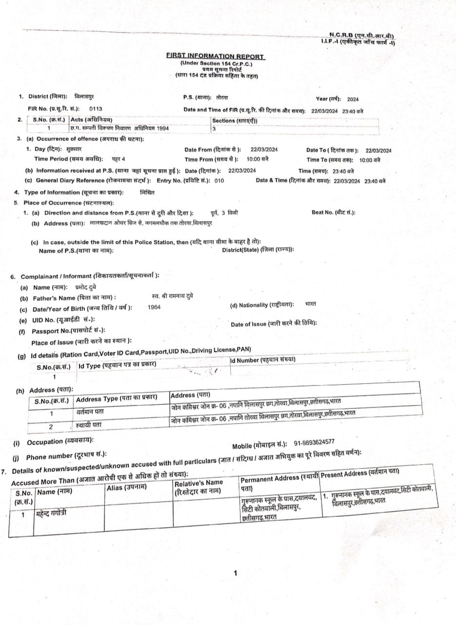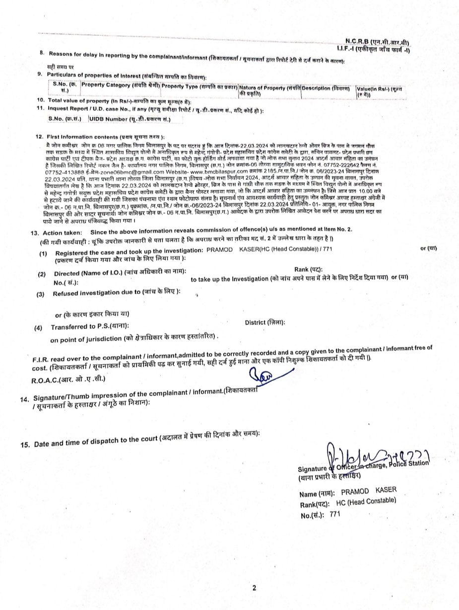 बिलासपुर- आचार संहिता के उल्लंघन के मामले में कांग्रेस प्रदेश महासचिव महेंद्र गंगोत्री के खिलाफ एफआईआर की गई है। सड़क के डिवाइडर में लगे पोल में उक्त नेता द्वारा कांग्रेस प्रदेश प्रभारी सचिन पायलट,प्रदेश कांग्रेस अध्यक्ष दीपक बैज समेत अन्य नेताओं की तस्वीरों के साथ कटआउट पोस्टर लगवाया गया था,जिसे निगम द्वारा हटाया गया। लोकसभा चुनाव के मद्देनजर लागू आदर्श आचार संहिता के उल्लंघन पर जिला निर्वाचन अधिकारी के निर्देश पर नगर निगम द्वारा तोरवा थाने में कांग्रेस प्रदेश महसचिव महेंद्र गंगोत्री के विरूद्ध आवेदन पर छ.ग.संपत्ति विरूपण निवारण अधिनियम की धारा 3 के तहत मामला दर्ज किया गया है।