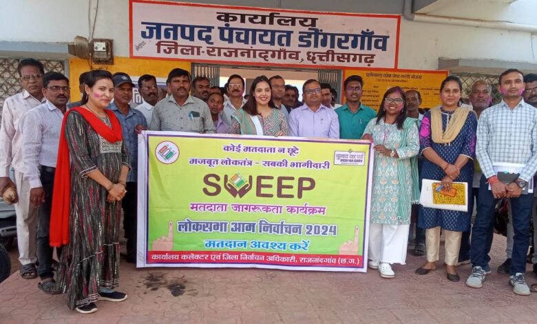 कलेक्टर एवं जिला निर्वाचन अधिकारी श्री संजय अग्रवाल के निर्देशन में लोकसभा निर्वाचन 2024 में शत-प्रतिशत मतदान का लक्ष्य को पूरा करने के उद्देश्य से जनपद पंचायत डोंगरगांव में स्वीप मतदाता जागरूकता एवं सम्मान समारोह का आयोजन किया गया। जिला पंचायत सीईओ एवं नोडल अधिकारी स्वीप सुश्री सुरूचि सिंह की उपस्थित में होली के रंग मतदान के संग नारे के साथ चुनावी फाग कार्यक्रम का शुभारंभ किया गया। सीईओ जिला पंचायत सुश्री सुरूचि सिंह ने सचिवों को मतदाता शपथ दिलाई एवं सभी को स्वीप मतदाता जागरूकता कार्यक्रम अंतर्गत शत-प्रतिशत मतदान के लिए मतदाताओं को जागरूक करने अपील की। उन्होंने स्वीप मतदाता जागरूकता कार्यक्रम अंतर्गत 3 से 9 अप्रैल तक सभी ग्राम पंचायतों में आयोजित स्वीप संगोष्ठी के संबंध में विस्तृत जानकारी दी। उन्होंने अधिकारियों व कर्मचारियों को संगोष्ठी के माध्यम से ग्रामीणों को मतदान के लिए जागरूक करने, लोकतंत्र में मतदान का महत्व बताने तथा ग्रामीणों को मतदाता शपथ दिलाने के निर्देश दिए। उन्होंने वोटर अवेयरनेस ग्रुप का गठन कर मतदान के लिए प्रेरित करने कहा। इसके साथ ही ग्राम पंचायत में स्वीप मतदाता जागरूकता कार्यक्रम अंतर्गत रैली, दीवाल लेखन, नुक्कड़ नाटक, रंगोली, पेंटिंग, चित्रकला, मशाल व कैंडिल मार्च जैसे कार्यक्रम का आयोजन कर ग्रामीणों को मतदान करने हेतु संकल्पित व प्रेरित करने निर्देशित किया। इस अवसर पर एसडीएम डोंगरगांव श्री मनोज कुमार मरकाम, सीईओ जनपद पंचायत डोंगरगांव श्री नवीन कुमार, एबीईओ डोंगरगांव सुश्री रश्मि ठाकुर, एपीओ श्री भगवती साहू, श्री होरीलाल, श्री देवेंद्र गोस्वामी, करारोपण अधिकारी श्री वीरेंद्र तिवारी, श्री ओपी जैन, संकुल समन्वयक कोकपुर श्री राहुल जैन सहित सचिव उपस्थित थे।