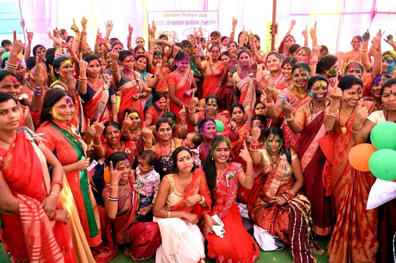 समूह की दीदियों ने खेली स्वीप होली, दिव्यांग छात्रों ने रंगोली, पेंटिंग बनाकर दिया मतदाता जागरूकता संदेश