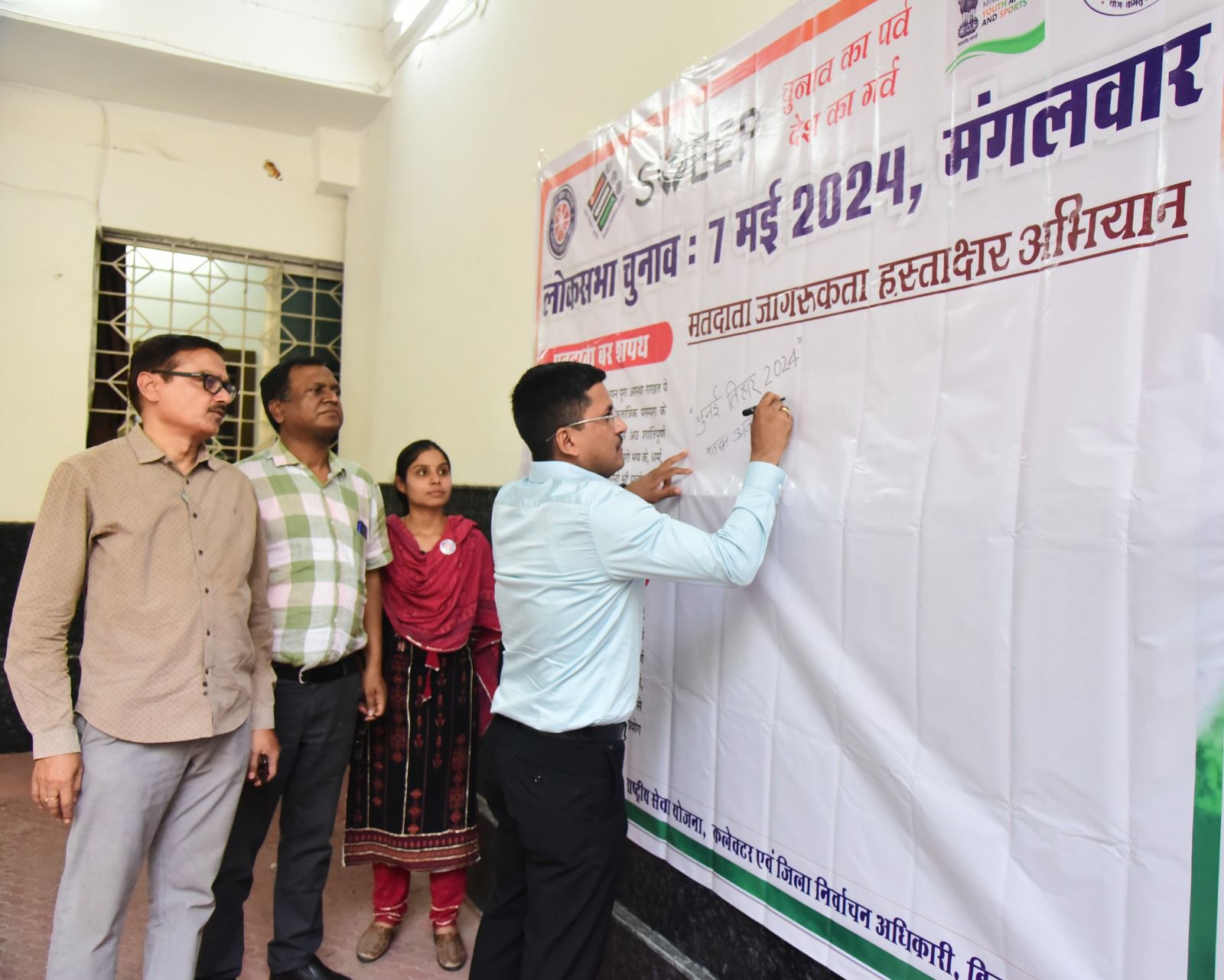 कलेक्टर एवं एसपी ने हस्ताक्षर अभियान की शुरूआत कर, लोगों से की मतदान करने की अपील