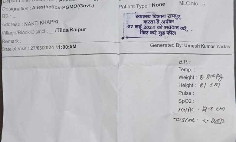 देश-प्रदेश में अभी लोक सभा चुनाव 2024 की तारीख़ो का ऐलान के साथ आदर्श आचार सहिता लागू है। आम नागरिक से लेकर अलग अलग संस्थाएँ मतदाता जागरूकता के लिए अपनी भूमिका निभा रहे हैं। छत्तीसगढ़ में तीन चरणों में मतदान संपादित होना है जिमसे तृतीय चरण का मतदान 7 मई को होना है। सामुदायिक स्वास्थ्य केंद्र तिल्दा ने ओ पी डी रसीद पर लगने वाले सील में मतदान के लिए जागरूकता लाने अनोखा पहल किया है। सामुदायिक केंद्र आने वाले हर व्यक्ति के ओ पी डी स्लिप में लगने वाले सील में 7 मई 2024 को मतदान करें, फिर करें गुड फील का संदेश अंकित करवाया है। आइये मतदान करें अपने साथ अपने आस पास के लोग को भी करायें मतदान।