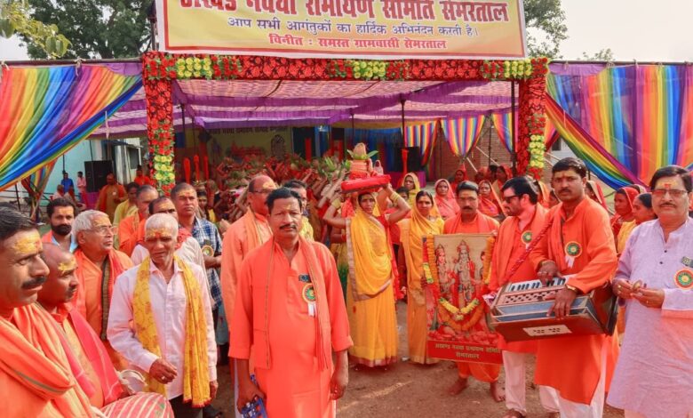 सेमरताल – अखंड नवधा रामायण समिति सेमरताल के तत्वावधान में लगातार आठवें वर्ष अखंड नवधा रामायण का आयोजन किया जा रहा है। नवधा का प्रारंभ मंगल कलश यात्रा के साथ किया गया।