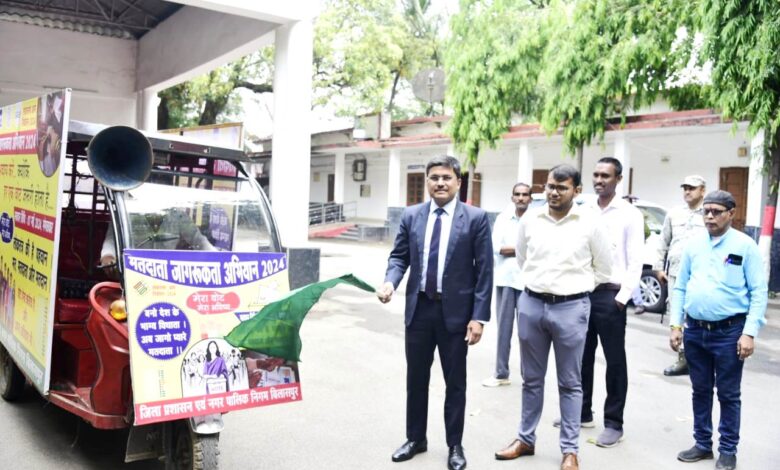 कलेक्टर एवं जिला निर्वाचन अधिकारी ने कार्यालय परिसर में मतदाता जागरूकता रथ को हरी झंडी दिखाकर रवाना की