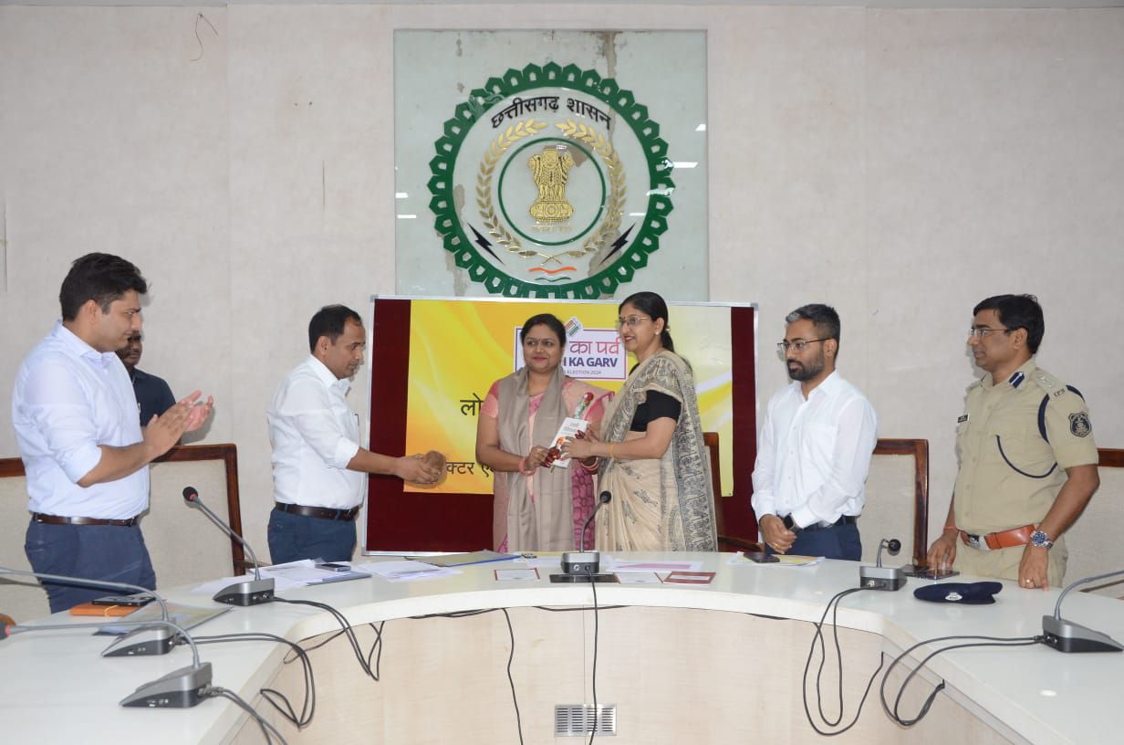 इस अवसर पर मुख्य निर्वाचन पदाधिकारी श्रीमती रीना बाबा साहेब कंगाले ने गौरला-पेंड्रा-मरवाही की शिक्षक श्रीमती मीनाक्षी केशरवानी को शॉल व श्रीफल देकर सम्मानित किया। मुख्य निर्वाचन पदाधिकारी और कलेक्टर ने श्रीमती केशरवानी के द्वारा रचित गाने की सराहना की। इस अवसर पर जिला पंचायत सीईओ श्री विश्वदीप ने जिले में स्वीप के तहत मतदाता जागरूकता के कार्य के बारे में विस्तार से जानकारी दी।