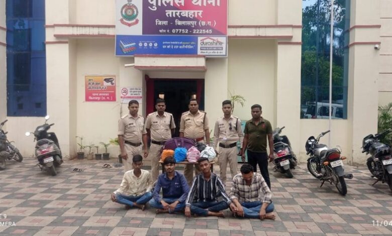 इसी कड़ी में तारबाहर पुलिस को मुखबीर से सूचना मिली कि 12 खोली हनुमान मंदिर के पास चार बाहरी व्यक्ति से मादक पदार्थ गांजा तस्करी कर बेचने ट्रेन से बाहर जाने के फिराक में है, सूचना के बाद पुलिस की टीम मुखबिर के बताए जगहें पर पहुँची।