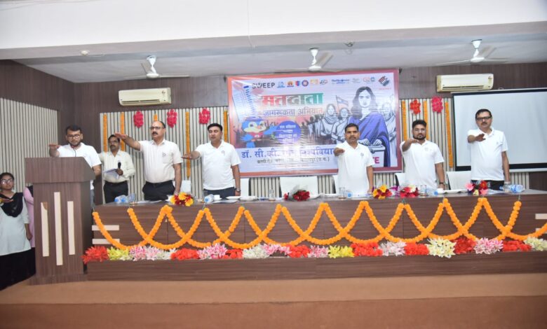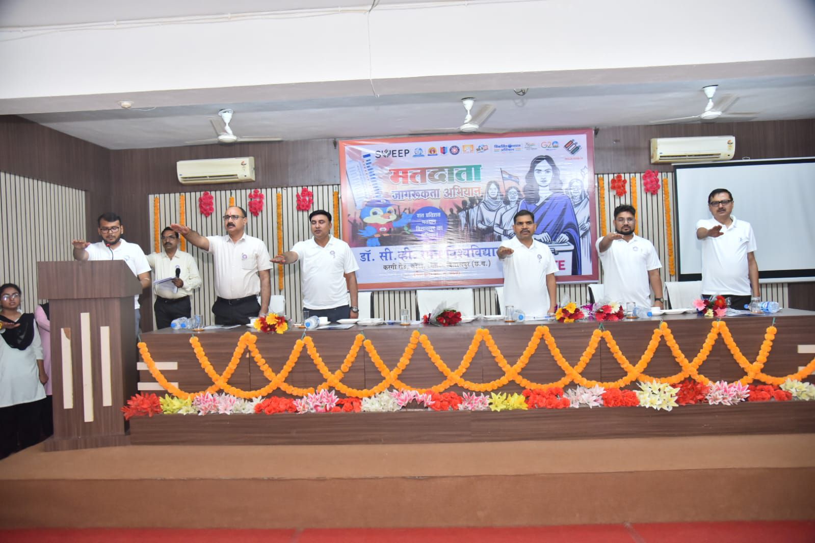 भारत निर्वाचन आयोग के निर्देशानुसार जिले में मतदाता जागरूता कार्यक्रम के तहत विभिन्न गतिविधियां आयोजित की जा रही है। लोकसभा निर्वाचन में लोगों की शत प्रतिशत सहभागिता के सुनिश्चित करने करने में हर वर्ग अपनी भागीदारी निभा रहा है। इसी कड़ी में कोटा ब्लॉक में स्थित डॉ.सीवी रमन विश्विद्यालय में युवा छात्रों की भागीदारी सुनिश्चित करने जागरूकता कार्यक्रम का आयोजन किया गया। कार्यक्रम में निगम कमिश्नर अमित कुमार और स्वीप नोडल अधिकारी,जिला पंचायत सीईओ आरपी चौहान ने शिरकत की।