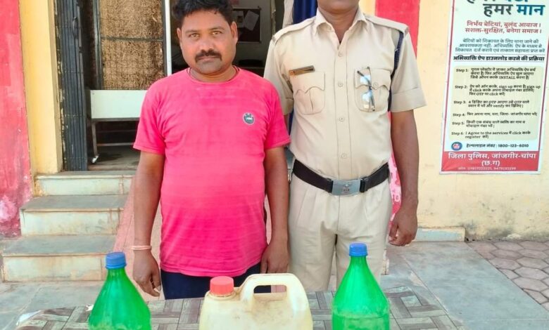 09 लीटर कच्ची महुआ शराब के साथ आरोपी गिरफ्तार पामगढ़ पुलिस की कार्यवाही।