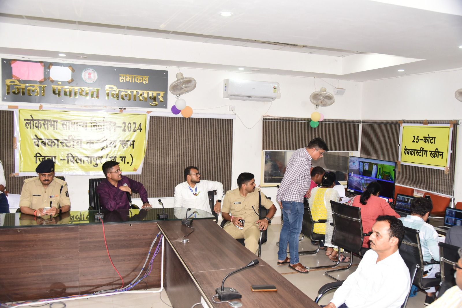 बिलासपुर संसदीय क्षेत्र के अंतर्गत जिले के 6 विधानसभा क्षेत्रों कोटा, तखतपुर, बिल्हा, बिलासपुर, बेलतरा एवं मस्तूरी के 763 मतदान केंद्रों में वेब कॉस्टिंग के जरिए निर्वाचन की हर गतिविधियों पर जिला प्रशासन द्वारा नजर रखी जाएगी। निर्वाचन आयोग के निर्देशानुसार कुल मतदान केंद्रों के 50 प्रतिशत मतदान केंद्रों में वेब कॉस्टिंग की जानी है। जिला पंचायत सभाकक्ष में इसके लिए कंट्रोल रूम बनाया गया है। जहां से इन मतदान केंद्रों पर निगरानी रखी जाएगी। जिले में 763 मतदान केंद्रों में वेब कॉस्टिंग की जा रही है, जिनमें 12 सहायक मतदान केंद्र भी शामिल हैं। कलेक्टर एवं जिला निर्वाचन अधिकारी श्री अवनीश शरण और पुलिस अधीक्षक श्री रजनेश सिंह ने आज कंट्रोल रूम का जायजा लेकर निगरानी के काम में लगे अधिकारी-कर्मचारी को जरूरी निर्देश दिए। इस अवसर पर निगम कमिश्नर श्री अमित कुमार, सीईओ जिला पंचायत श्री आरपी चौहान मौजूद थे।