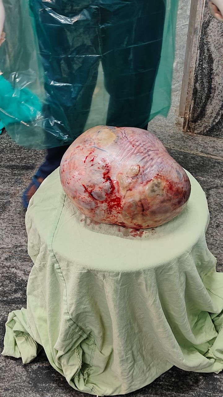 सिम्स अस्पताल के अधीक्षक डॉक्टर एस नायक ने बताया कि मरीज लगनी बाई पति हरिशंकर, उम्र 35 वर्ष, निवासी ग्राम चिल्हाटी बिलासपुर, पिछले एक साल से पेट री की समस्या से परेशान थी। 4 महीनो से पेट में सूजन आने लगी, जो कि बढ़ते जा रही थी। प्रायवेट अस्पताल में जांच में पेट में ट्यूमर होना बताया गया, परंतु कई अस्पतालों में दिखाने के बाद भी उसे उचित लाभ नहीं मिल पाया। ट्यूमर इतना बढ़ चुका था मानो वह 9 महीने की गर्भवती लग रही थी। मरीज को सांस लेने में परेशानी एवं अन्य परेशानी बढ़ने लगी। जिसके बाद वह