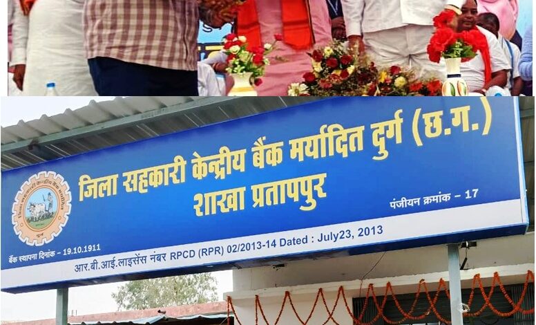 प्रतापपुर। दुर्ग सांसद श्री विजय बघेल और खाद्य मंत्री श्री दयाल दास बघेल ने आज दुर्ग जिले के जिला सहकारी केन्द्रीय बैंक मर्यादित, शाखा प्रतापपुर का शुभारंभ किया। दुर्ग सांसद श्री बघेल ने अपनी शुभकामनाएं देते हुए कहा कि नवीन बैंक शाखा खुलने पर इससे ग्रामीण क्षेत्र के आमजनों को लाभ होगा और इस क्षेत्र के किसानों को सुविधा मिलेगी। सहकारी समिति एक ऐसी संस्था है जिसमें काम करने का बहुत अच्छा अवसर रहता है।