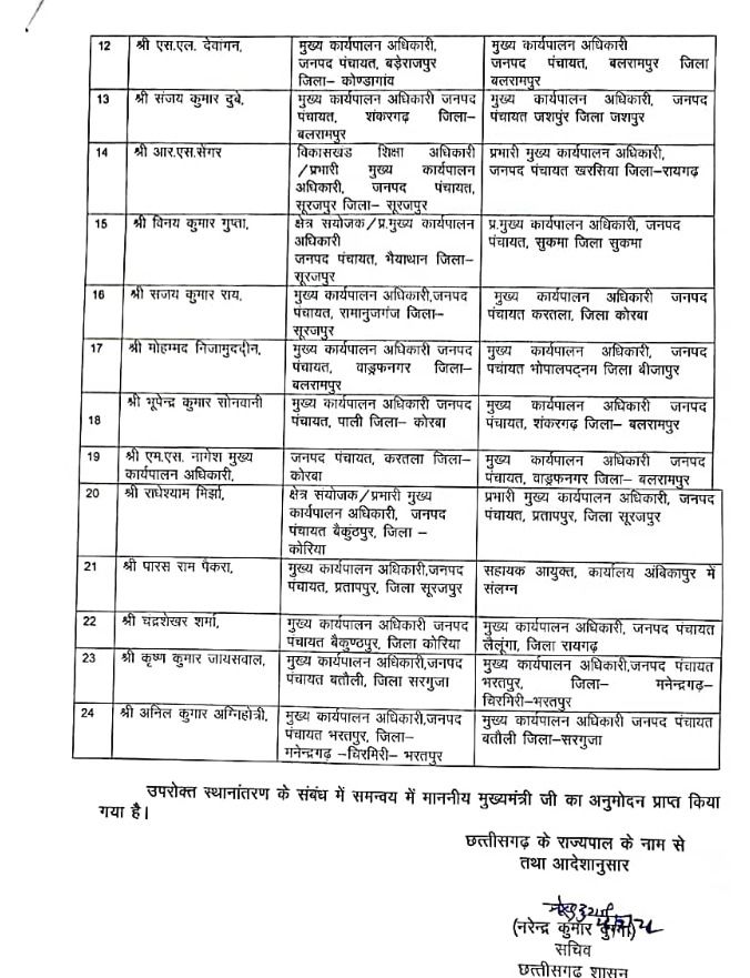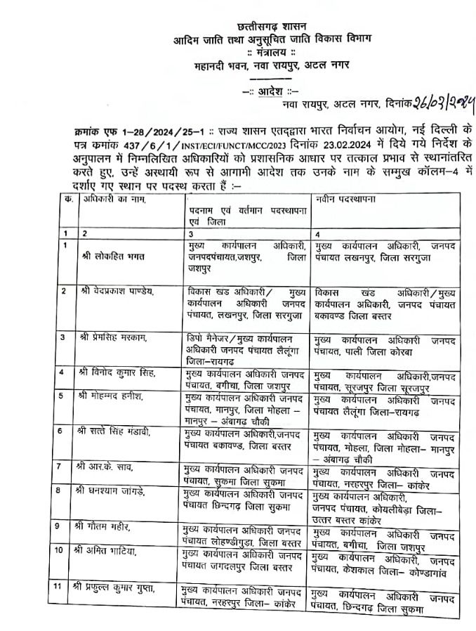 जनपद सीईओ के तबादले, देखे लिस्ट